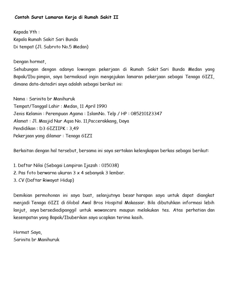 15+ Contoh Surat Lamaran Kerja Rumah Sakit Lengkap ... from contohsuratin.com Contoh surat lamaran kerja rumah sakit siloam palembang. Maybe you would like to learn more about one of these? Check spelling or type a new query. We did not find results for: